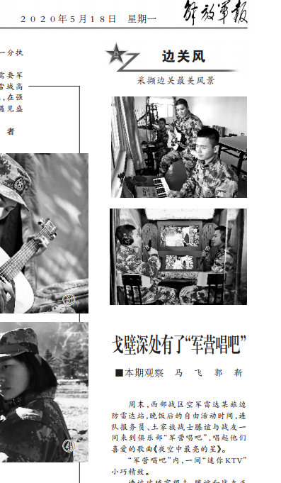 軍營里有一些音樂迷。在擁有手機網(wǎng)絡(luò)信號的營中,在業(yè)余時間,我們可以選擇手機沖浪作為一種休閑方式,但是手機不能解決官兵的所有精神需求。一些軍官也渴望向軍營增加一些文化和娛樂硬件設(shè)施。